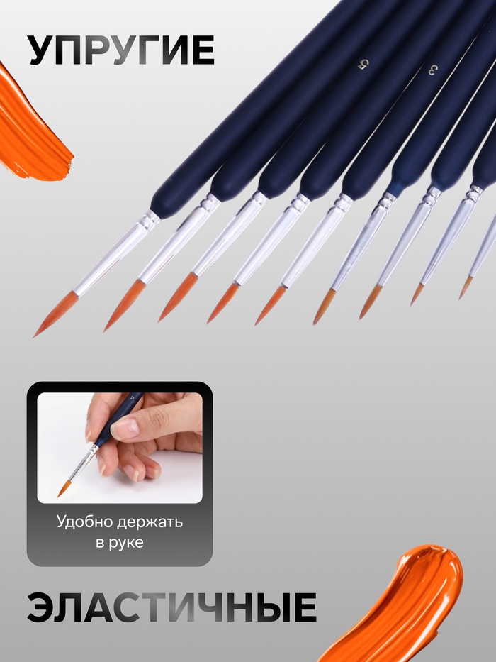 - Полная размерная линейка: Одиннадцать кистей включают сверхтонкие номера для миниатюр и инструменты для создания цветовых плоскостей. Вы готовы к любой художественной задаче.