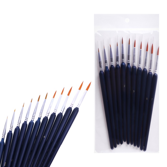 Набор кистей для рисования, нейлон, 11 штук: № 00000, 000, 00, 0, 1, 2, 3, 4, 5, 6, 7, Calligrata, круглые, деревянная ручка, международный размер — Характеристики