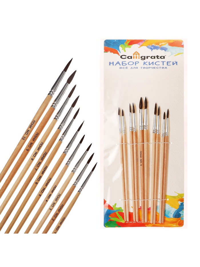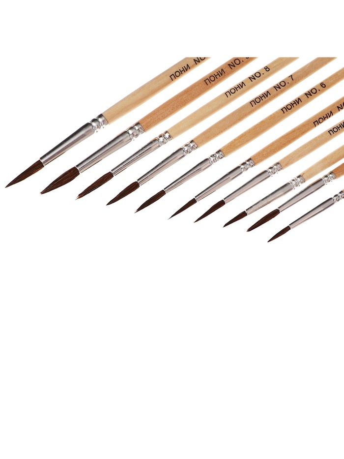 Набор кистей для рисования, пони, 10 штук: № 1, 2, 3, 4, 5, 6, 7, 8, 9, 10, круглые, деревянная ручка, международный размер — Характеристики