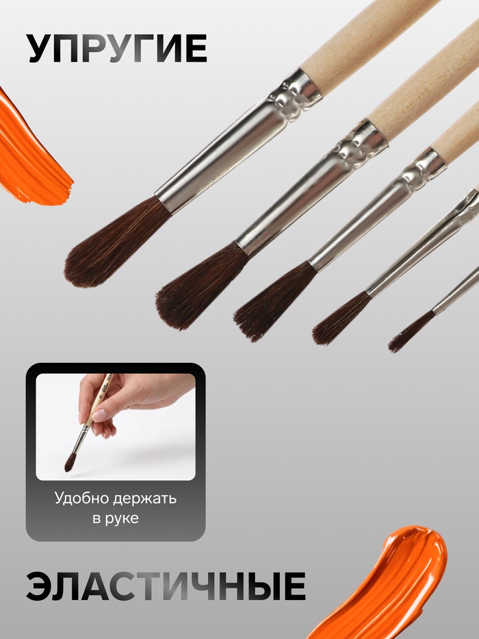 В наборе круглые кисти №1, №2, №3, №4, №5.