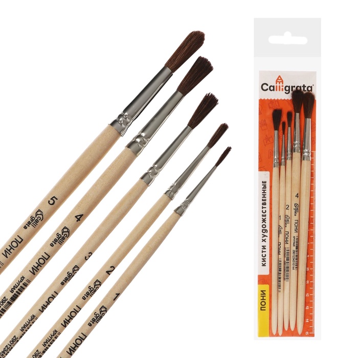 Кисти из волоса пони - это качественная альтернатива беличьим кистям. Ворс средней жёсткости, достаточно упругий и мягкий, подходит для работы с акварелью, гуашью и темперой. С помощью такой кисти легко накладывать мазки краски. Соотношение цены и качества сделало изделия из волоса пони одними из самых востребованных для детей школьного возраста. Ручка изготовлена из берёзы. Цельнометаллическая никелированная бесшовная обойма обеспечивает надёжное соединение ручки и волосяного пучка.