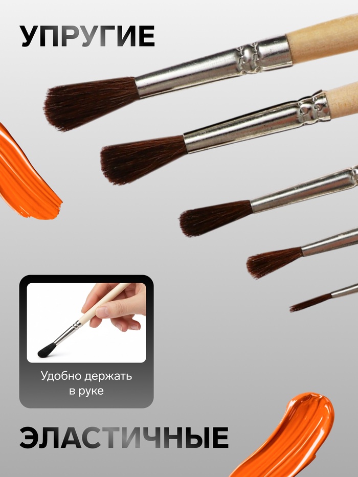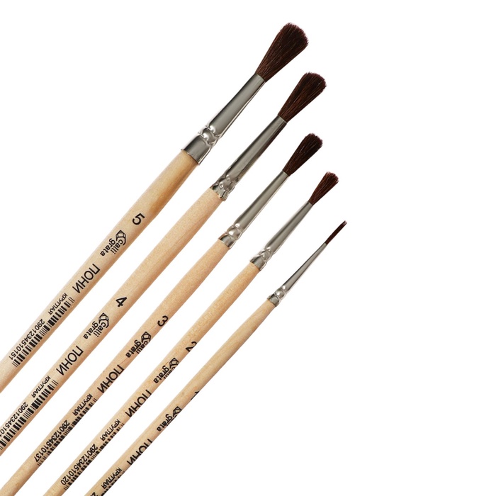 В наборе круглые кисти №1, №2, №3, №4, №5.