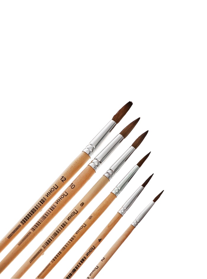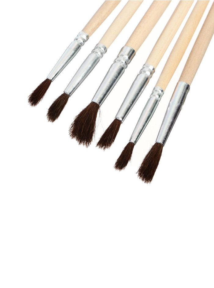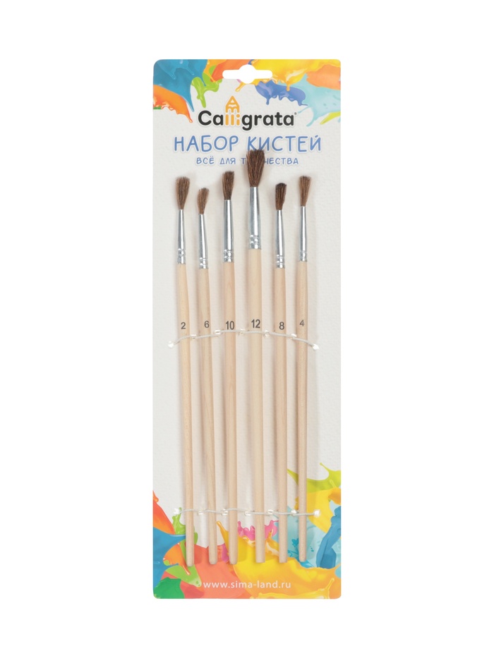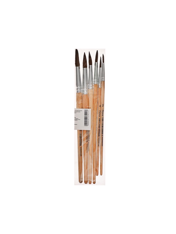 Набор кистей для рисования, пони, 6 штук: № 2, 4, 6, 8, 10, 12, круглые, деревянная ручка, международный размер — Характеристики