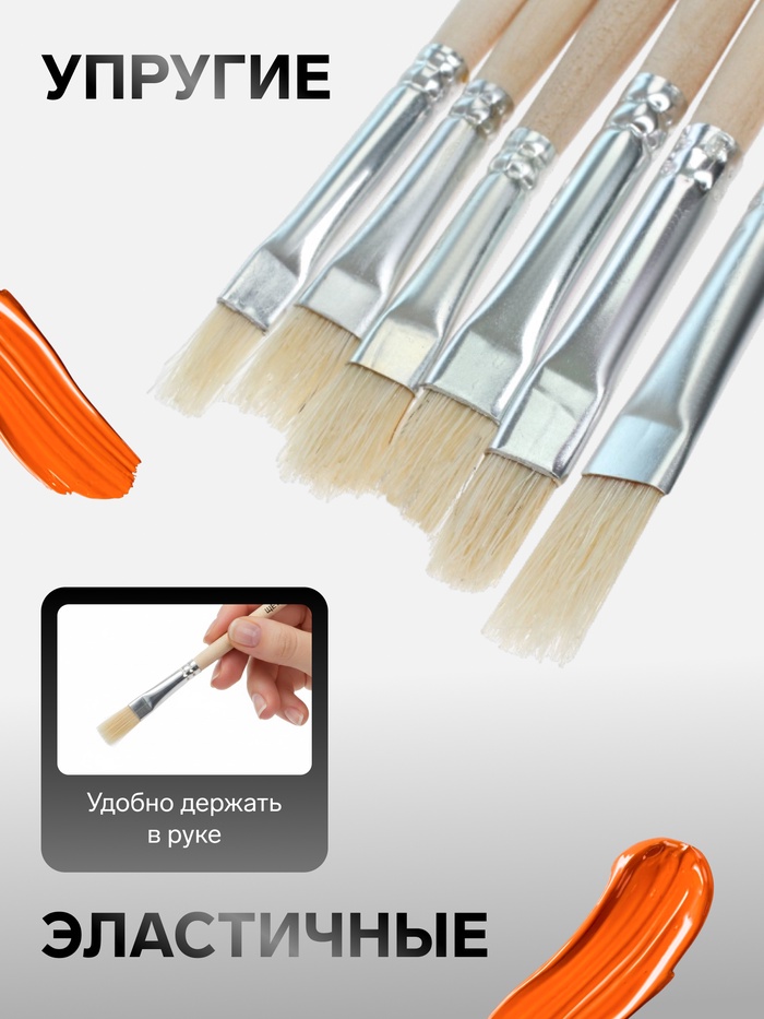 Набор кистей для рисования, щетина, 6 штук: № 1, 2, 3, 4, 5, 6, плоские, деревянная ручка, международный размер — Характеристики