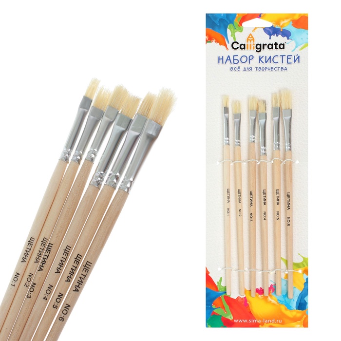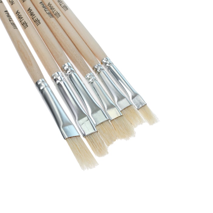Набор кистей для рисования, щетина, 6 штук: № 1, 2, 3, 4, 5, 6, плоские, деревянная ручка, международный размер