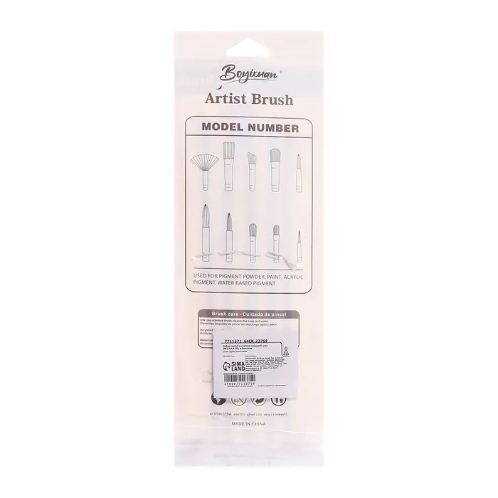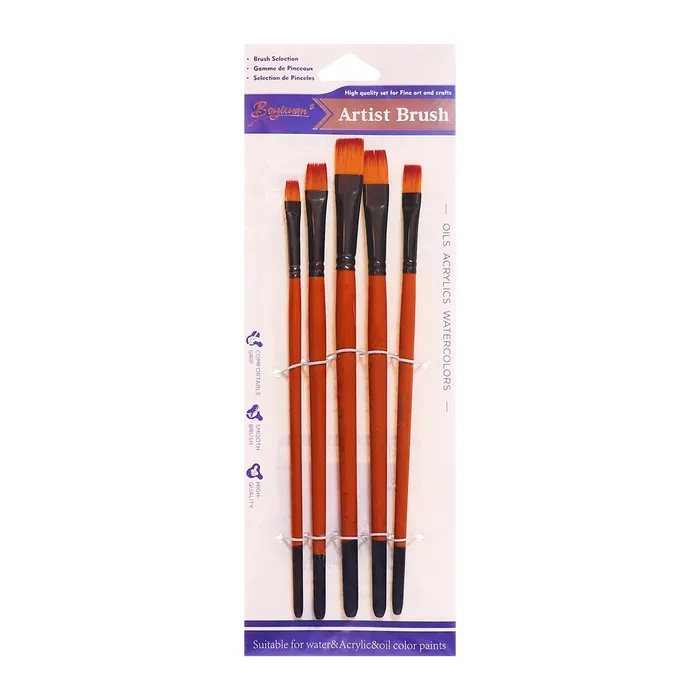 - Пять плоских кистей из синтетического волокна.