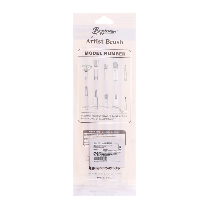 Набор кистей для рисования, синтетика, 5 штук: № 2, 4, 6, 8, 10, плоские, в блистере, международный размер — Характеристики
