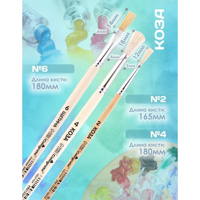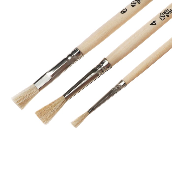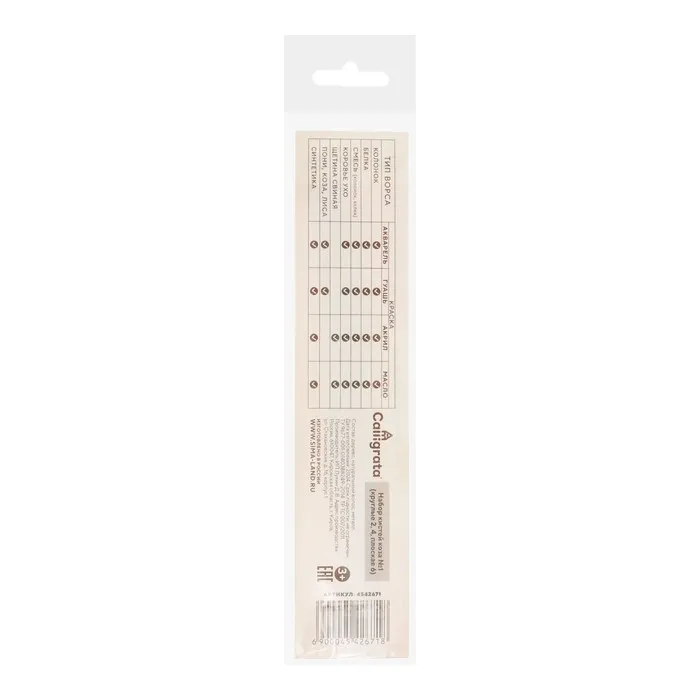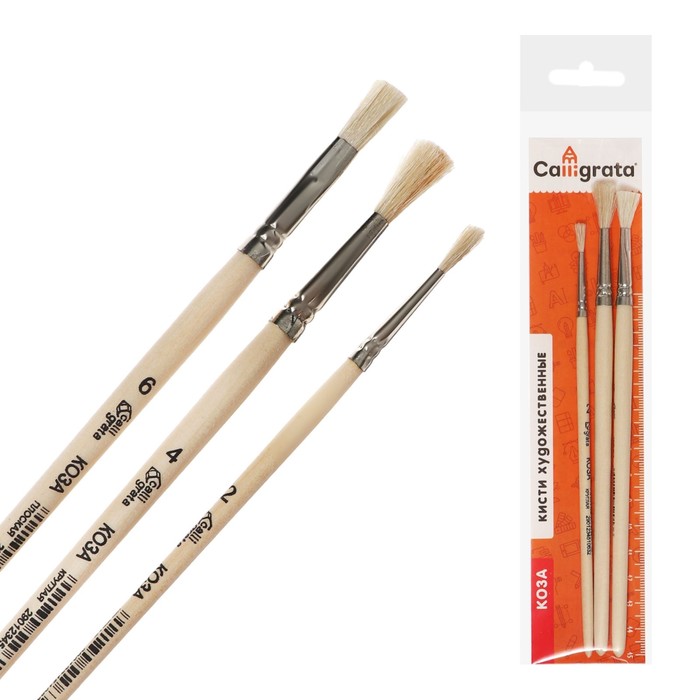 Набор кистей Коза 3 штуки, Calligrata №1 (круглые №: 2, 4 ; плоская №6), деревянная ручка, пакет — Характеристики