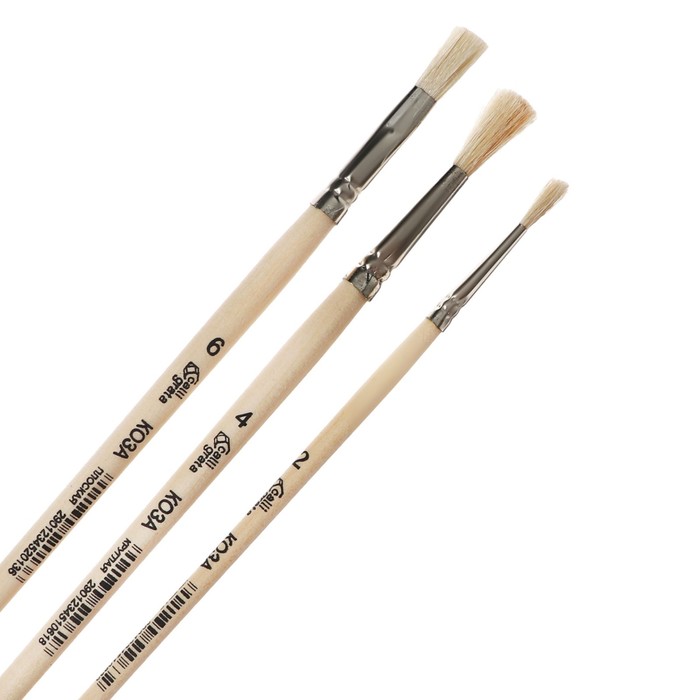 Набор кистей из меха козы №2, 4 (круглые), 6 (плоская) в PVC-пакете.