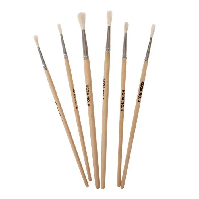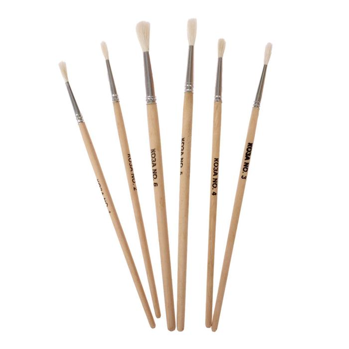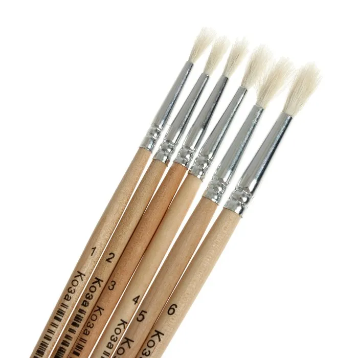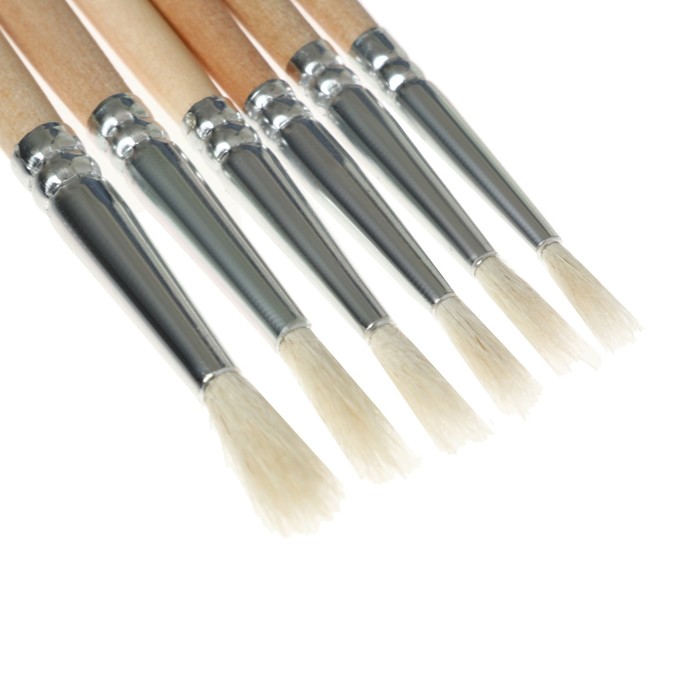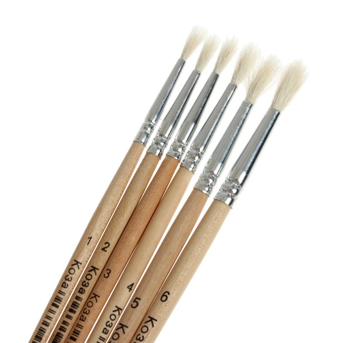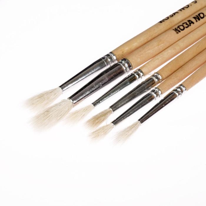 Набор кистей коза 6 штук: № 1, 2, 3, 4, 5, 6, круглые, с деревянными ручками, в блистере — Характеристики