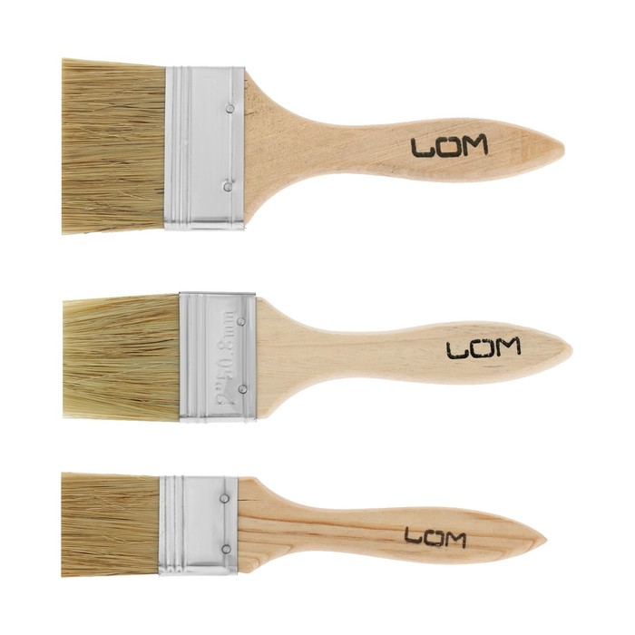 Набор кистей ЛОМ, натуральная щетина, деревянная рукоятка, 1.5-2-2.5", 38, 50, 63 мм — Характеристики