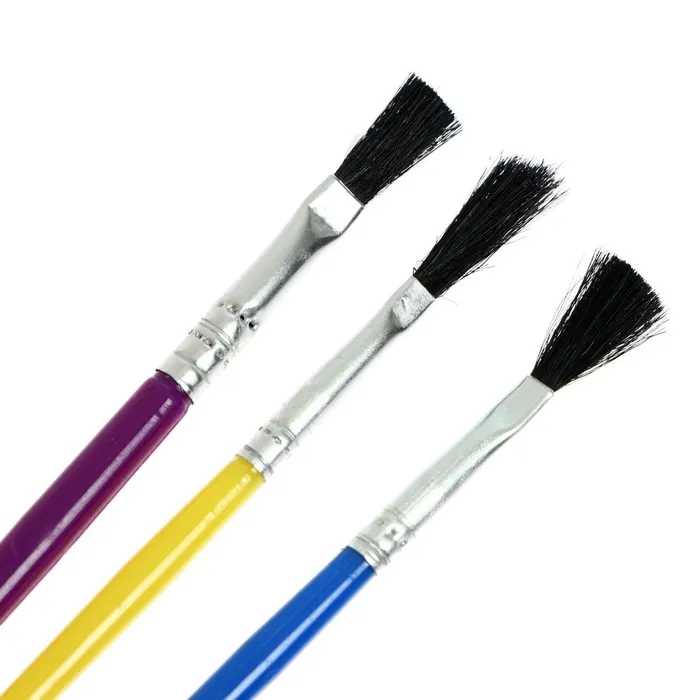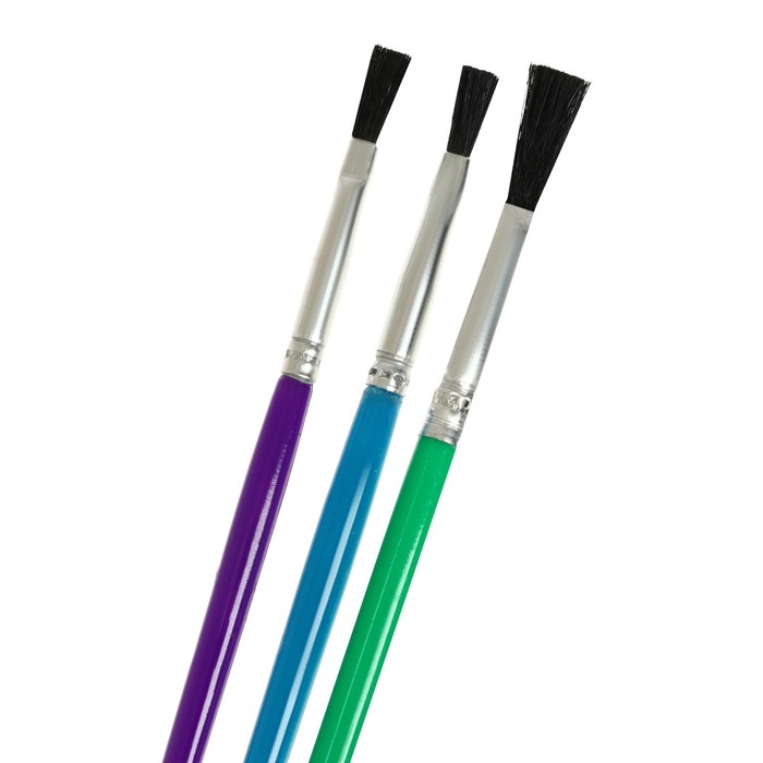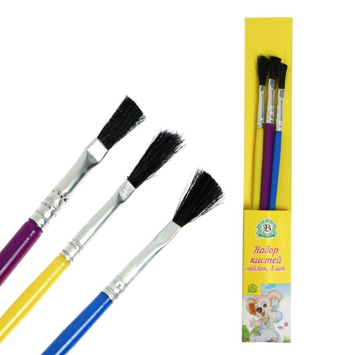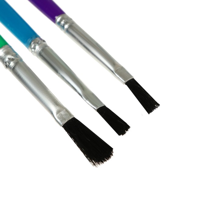 Набор кистей нейлон, 3 штуки, плоские, с пластиковыми, цветными ручками — Характеристики