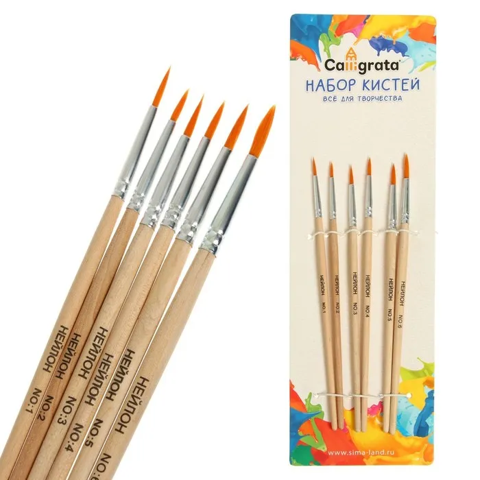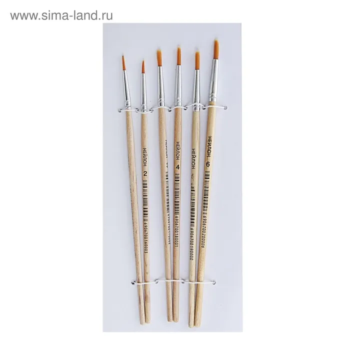 Набор кистей нейлон 6 штук: №1, 2, 3, 4, 5, 6, круглые — Характеристики