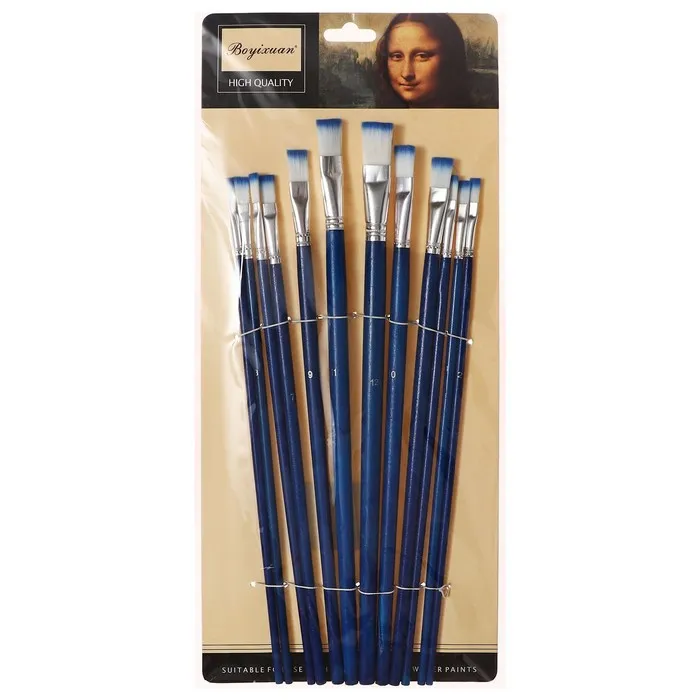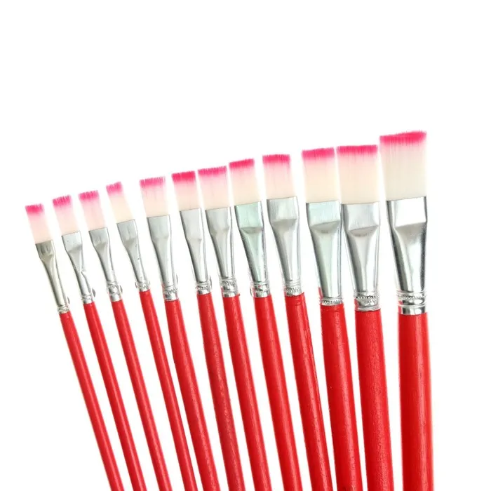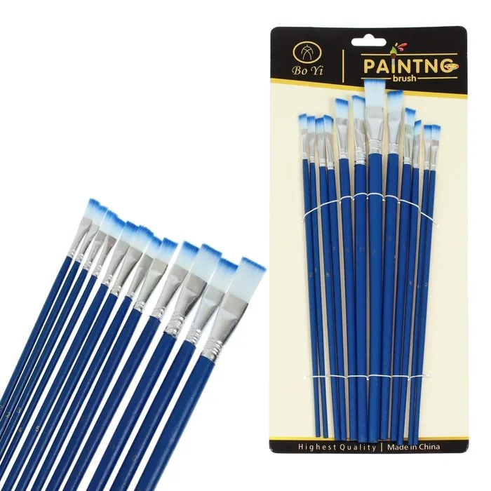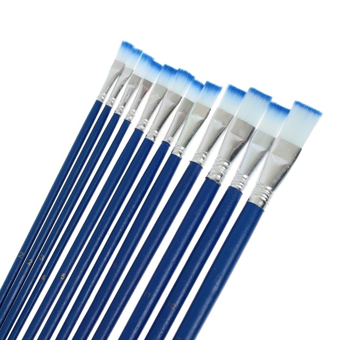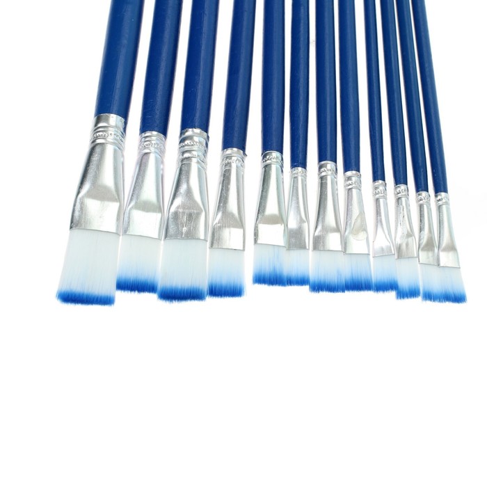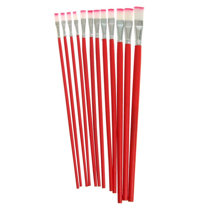 Набор кистей нейлон, плоские, 12 штук (№1, 2, 3, 4, 5, 6, 7, 8, 9, 10, 11, 12) с деревянными ручками — Характеристики