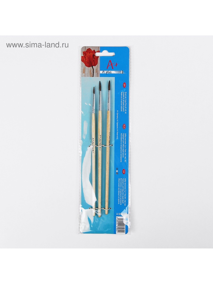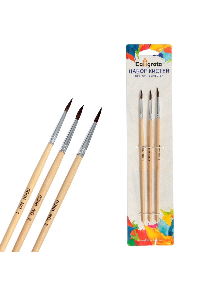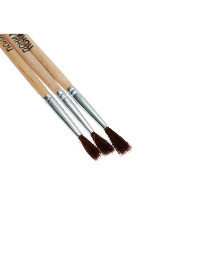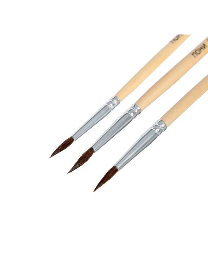 Набор кистей пони 3 штуки: № 1, 2, 3, круглые, с деревянными ручками, в блистере — Характеристики