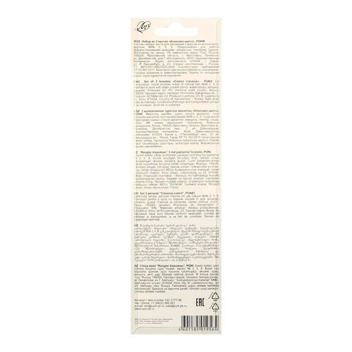 Набор кистей Пони 3шт Луч Классика цвета, (круглые № 2, 5, 8) — Характеристики