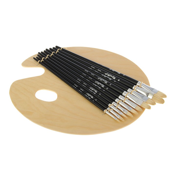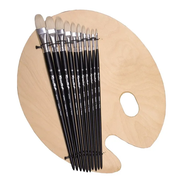 Набор кистей Щетина 10 штук Roubloff НАБОР № 41: овальные на деревянной палитре №: 4, 6, 7, 8, 9, 10, 14, 15, 18, 20 — Характеристики