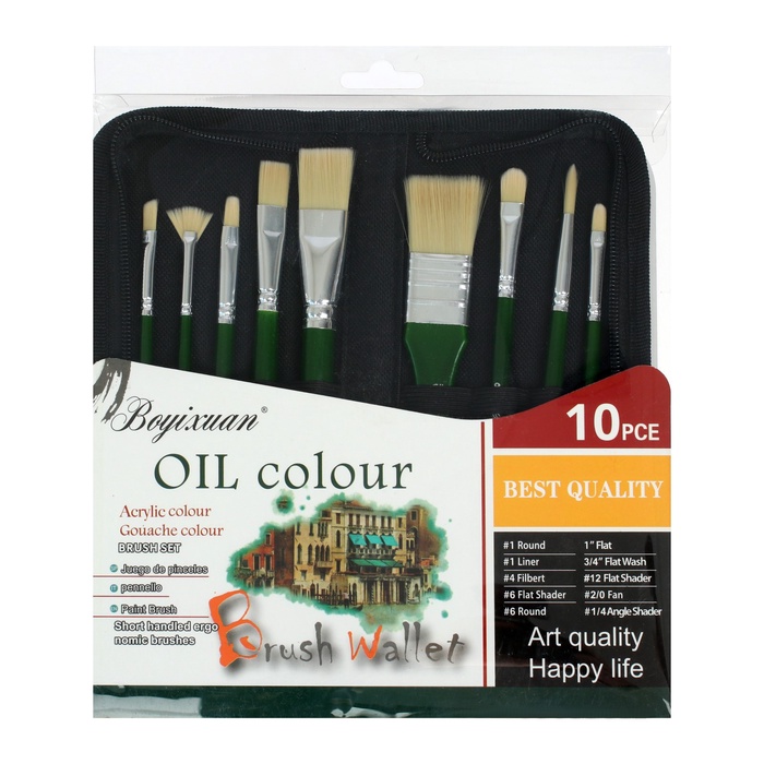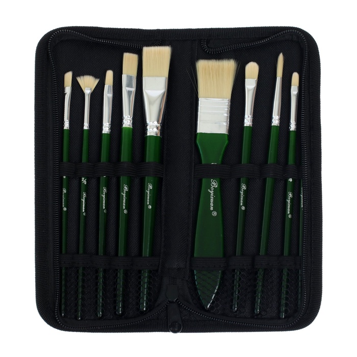 Набор кистей щетина 10 штук, в пенале на молнии — Характеристики