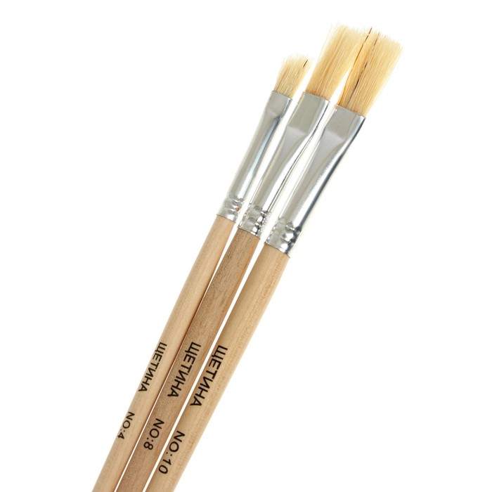 Набор кистей щетина 3 штуки: № 4, 8, 10, плоские — Характеристики