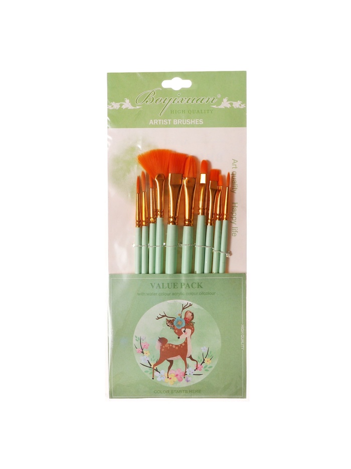 Набор кистей синтетика, 10 штук (№2/0,1,3,6,8,10,6,4,5,2), в блистере — Характеристики