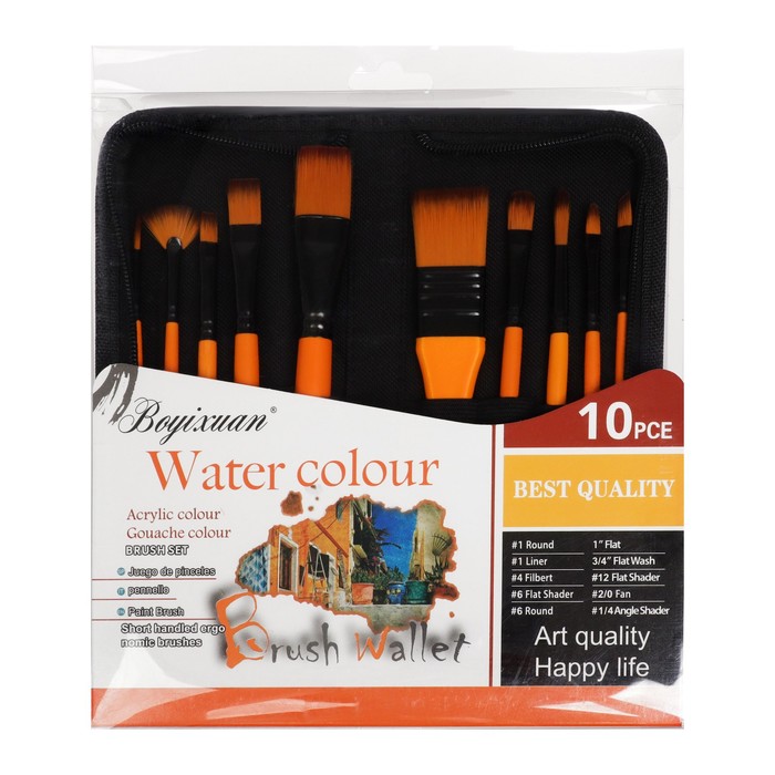 Набор кистей синтетика, 10 штук, в пенале на молнии — Характеристики