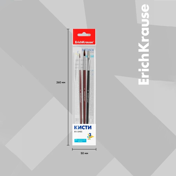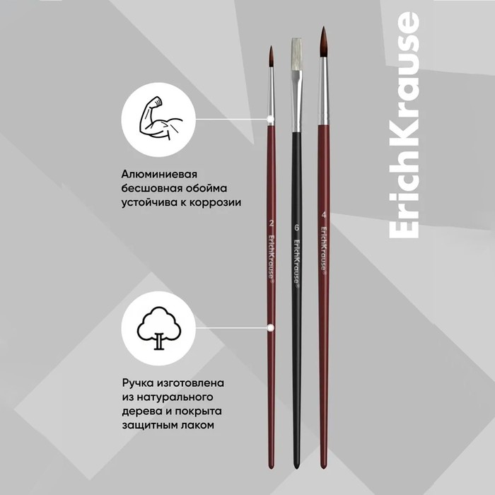 Набор кистей, синтетика, 3 штуки, ArtBerry для акварели и гуаши, еврослот — Характеристики