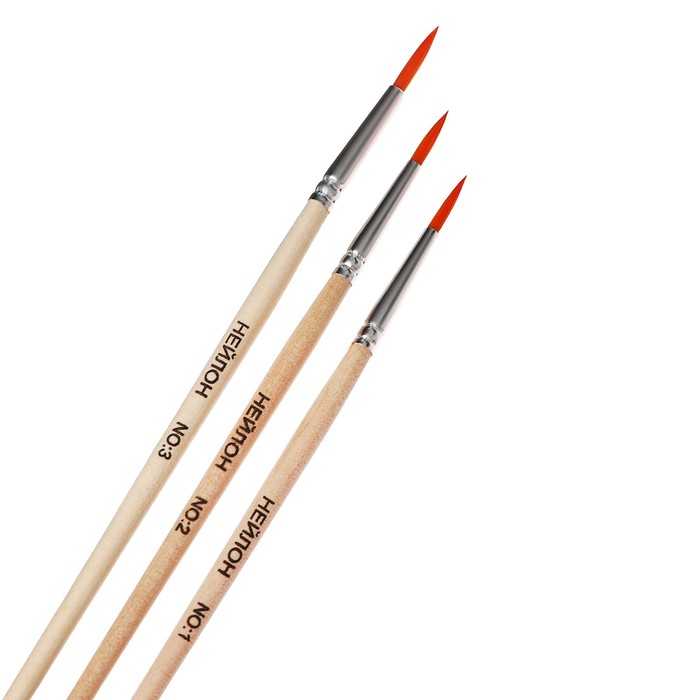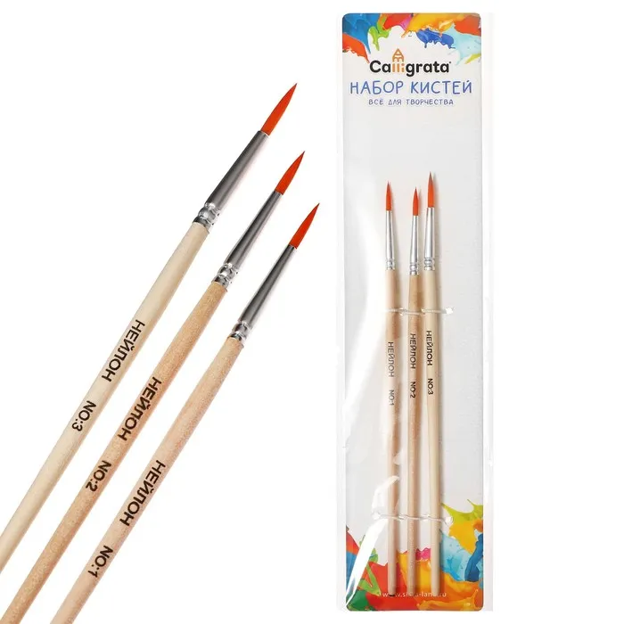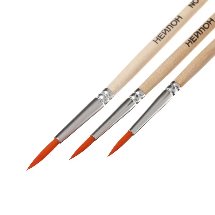 Набор кистей синтетика 3 штуки (круглые: №1,2,3) с деревянными ручками, на блистере — Характеристики