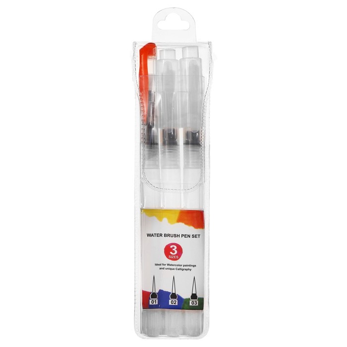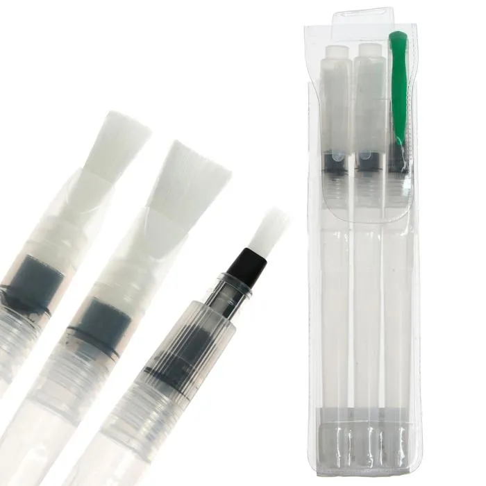 Набор кистей синтетика 3 штуки (№1,2,3) плоские с резервуаром для воды, туши, чернил — Характеристики