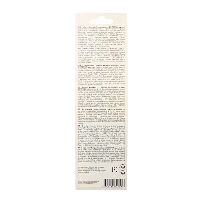 Набор кистей Синтетика 3шт Луч "Классика цвета", (круглые № 2, 3, 5) — Характеристики