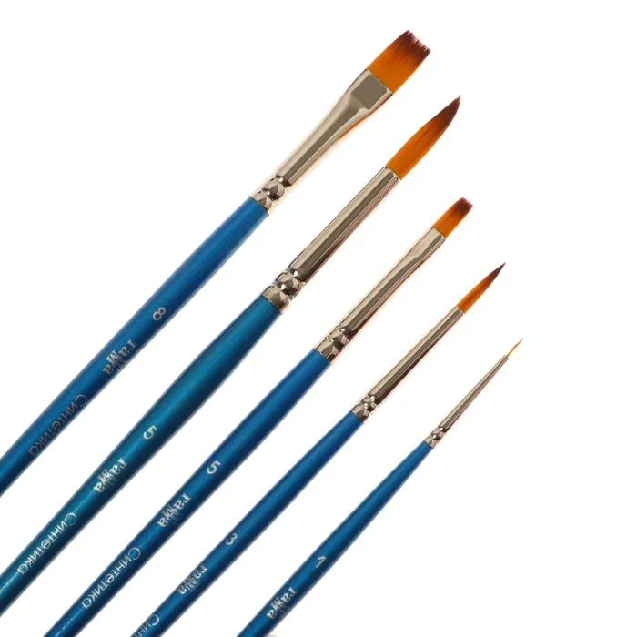 Набор кистей "Синтетика", 5 штук круглые № 1, 3, 5, плоские № 5,8 — Характеристики
