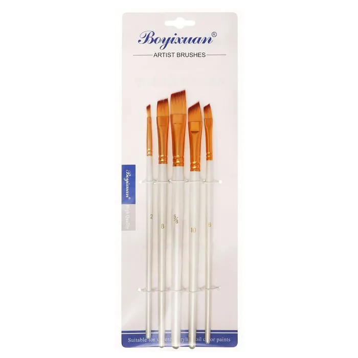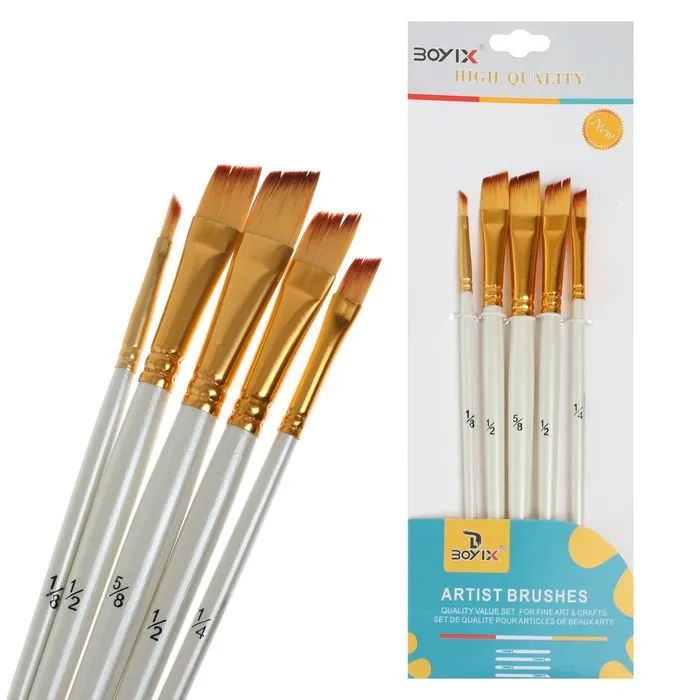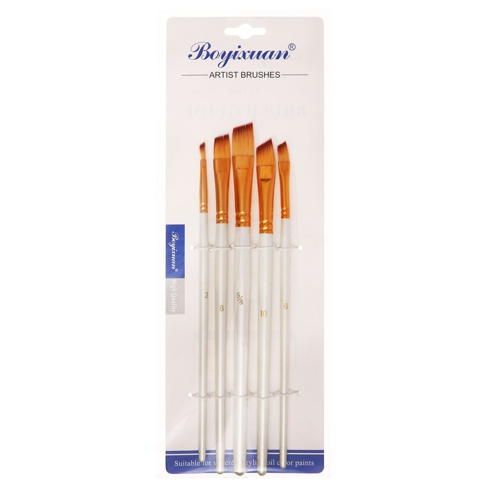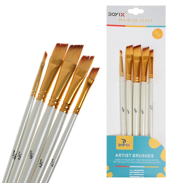 Набор кистей синтетика, 5 штук (№1/8,3/8,5/8,1/2,1/4), плоские, скошенные, в блистере — Характеристики