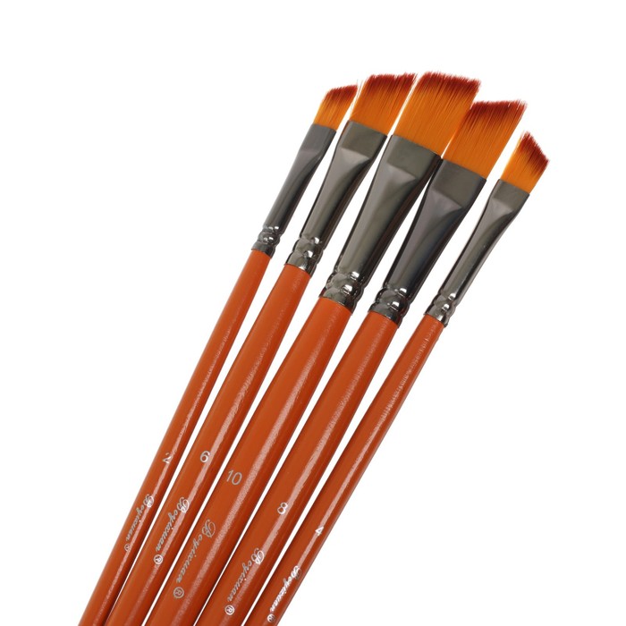 Набор кистей синтетика, 5 штук (№2,4,6,8,10),плоские, скошенные, в блистере — Характеристики