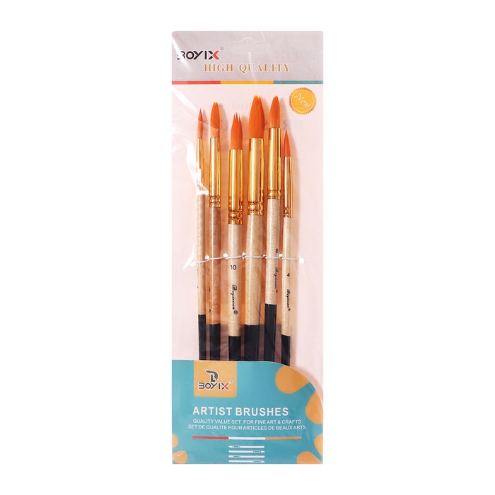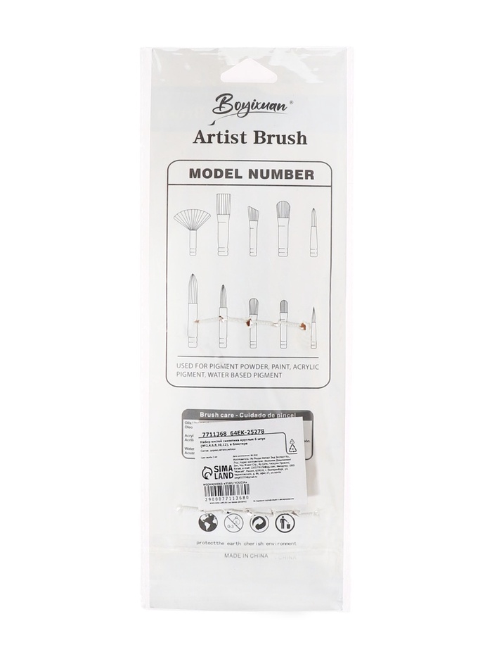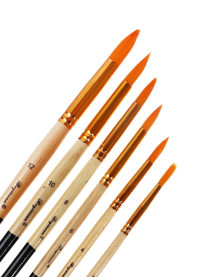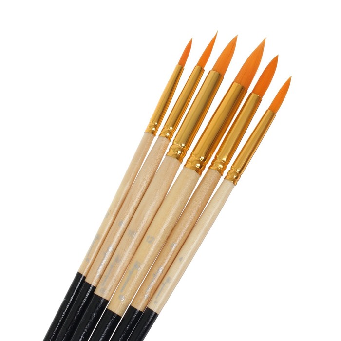 Набор кистей синтетика, 6 штук (№2,4,6,8,10,12),круглые, в блистере — Характеристики