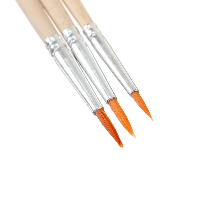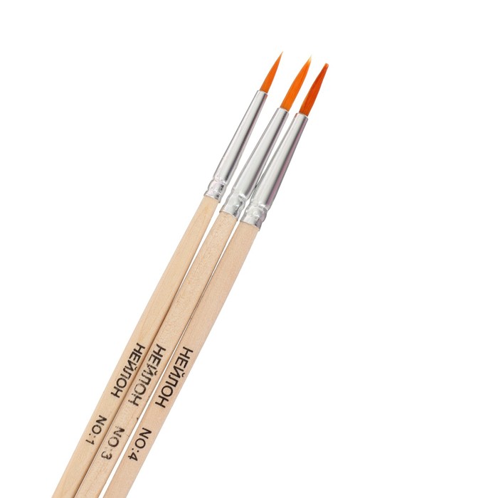 Набор кистей синтетика круглые 3 штуки (№1,3,4) с деревянными ручками в пакете — Характеристики