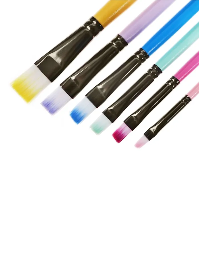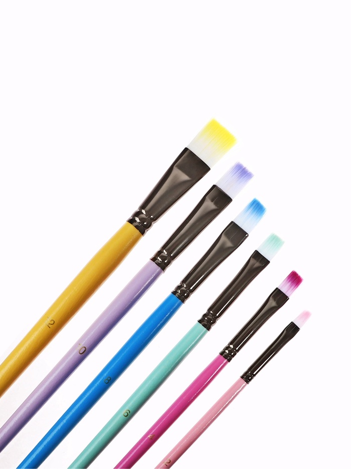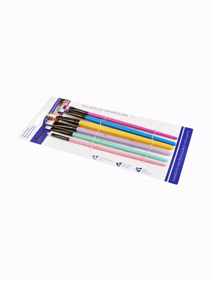 Набор из 6 плоских кистей с цветными ручками — это идеальный выбор для художников и творческих людей. Набор включает кисти разных размеров, что делает его универсальным инструментом для различных техник рисования.