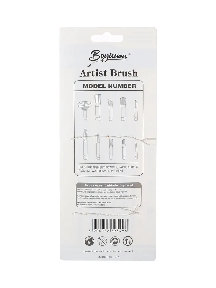 - 6 кистей в наборе: Включает кисти размеров №2, 4, 6, 8, 10, 12, что позволяет работать с разными деталями и поверхностями.