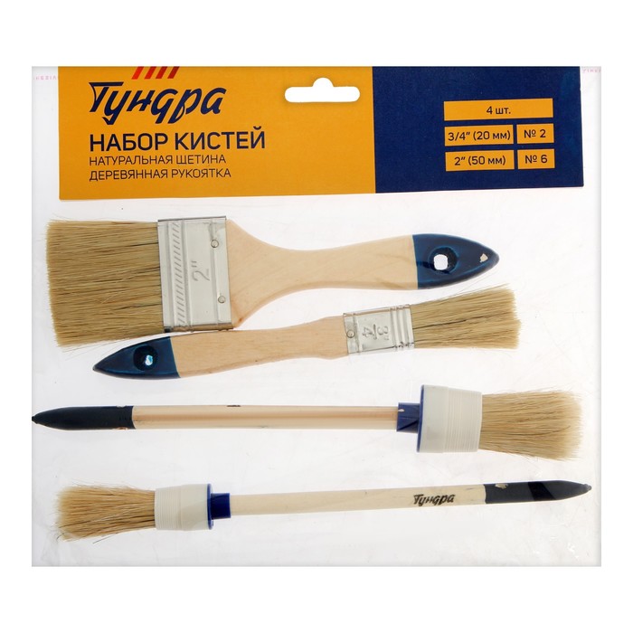 Набор кистей ТУНДРА, плоские, круглые №2, №6, 20, 50, 20, 30 мм 4 шт. — Характеристики