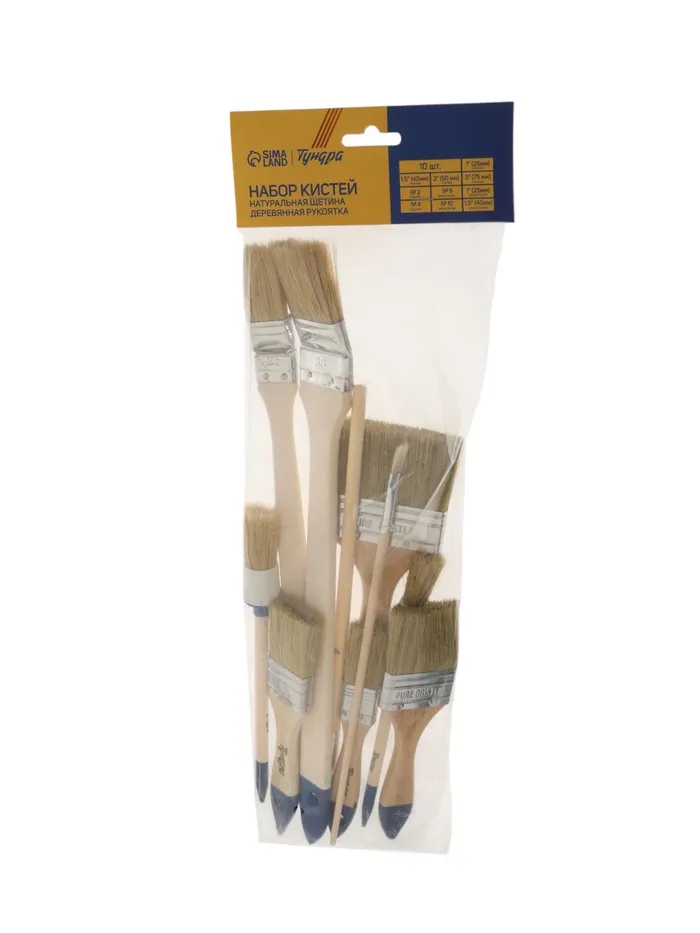 Набор кистей ТУНДРА, плоские, круглые, радиаторные, для масляной краски, 10 шт. — Характеристики