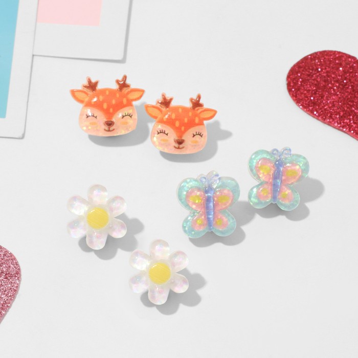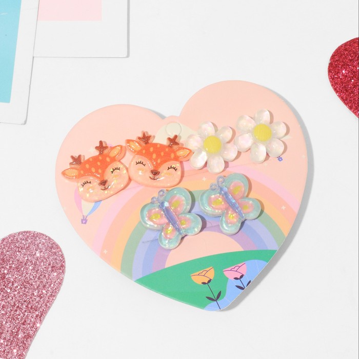 Набор клипс детских (3 пары) «Выбражулька» лесная сказка, цветной