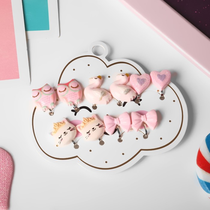 Набор клипс детских (5 пар) «Выбражулька» для принцессы, цвет розовый — Характеристики