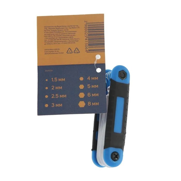 Набор ключей имбусовых складных ТУНДРА, с шаром, 1.5 - 8 мм, 8 шт. — Характеристики