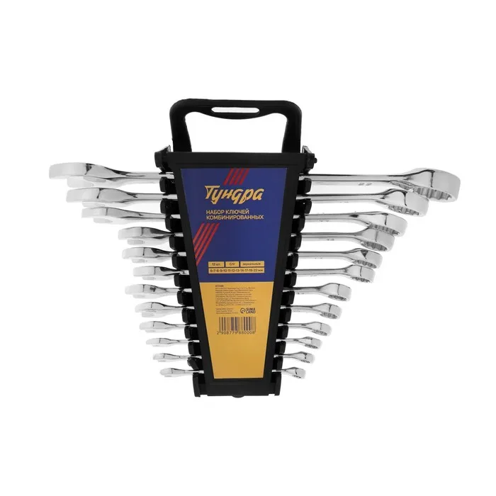 Набор ключей комбинированных в холдере ТУНДРА, CrV, зеркальные, 6 - 22 мм, 12 шт. — Характеристики