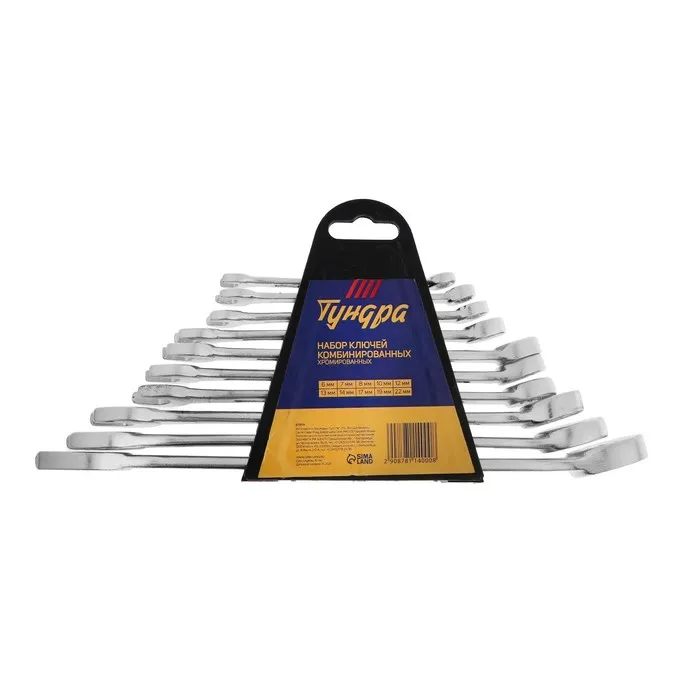 Набор ключей комбинированных в холдере ТУНДРА, хромированные, 6 - 22 мм, 10 шт. — Характеристики