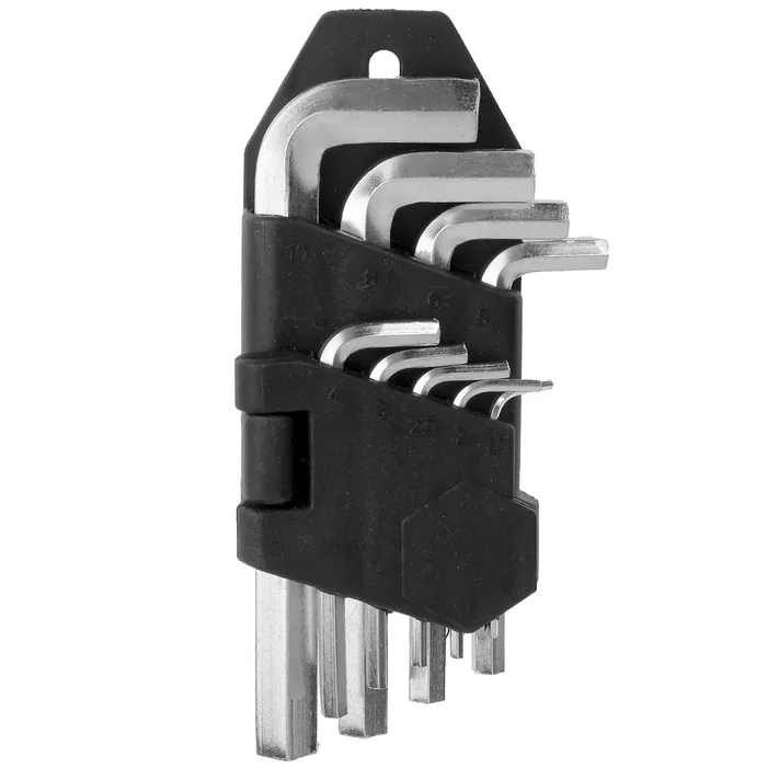 Шестигранные ключи предназначены для вкручивания и отвинчивания крепёжных элементов, имеющих шестигранный шлиц. Набор незаменим при обслуживании автомобилей, велосипедов, техники, при сборке мебели и другого оборудования.