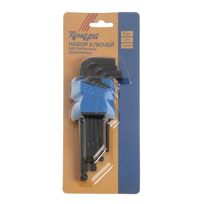 Набор ключей шестигранных ТУНДРА black, удлиненных. с шаром, CrV, 1.5 - 10 мм, 9 шт. — Характеристики