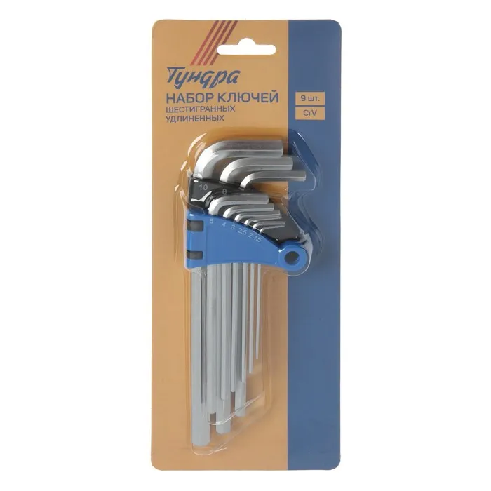 Набор ключей шестигранных ТУНДРА, удлиненных, CrV, 1.5 - 10 мм, 9 шт. — Характеристики