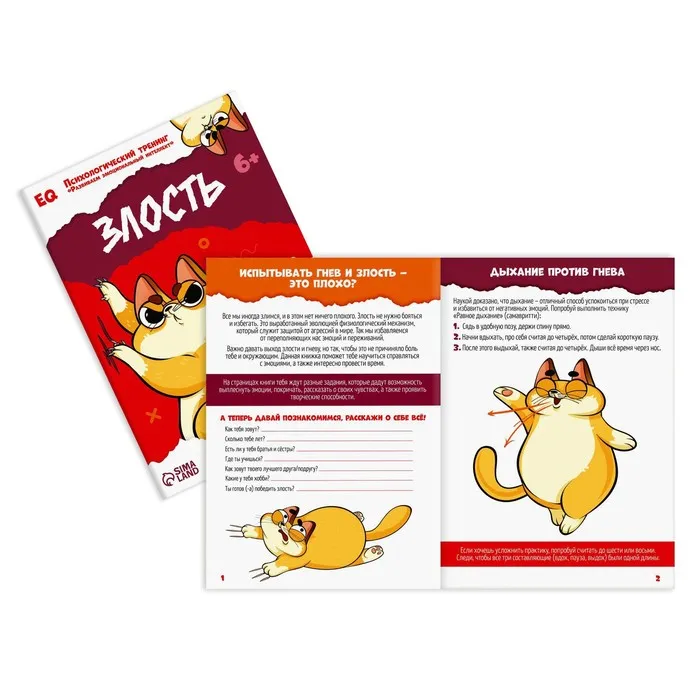 - «Злость». Книга описывает 18 действенных способов справиться с этой эмоцией. Детям предстоит сминать странички, собирать ловушку для злости, запускать воздушный шар, рисовать эмоции и не только.