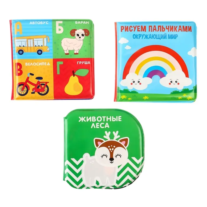Набор книжек - игрушек для ванны Крошка Я «Мир вокруг нас», водная раскраска, 3 шт., от 4 мес. — Характеристики