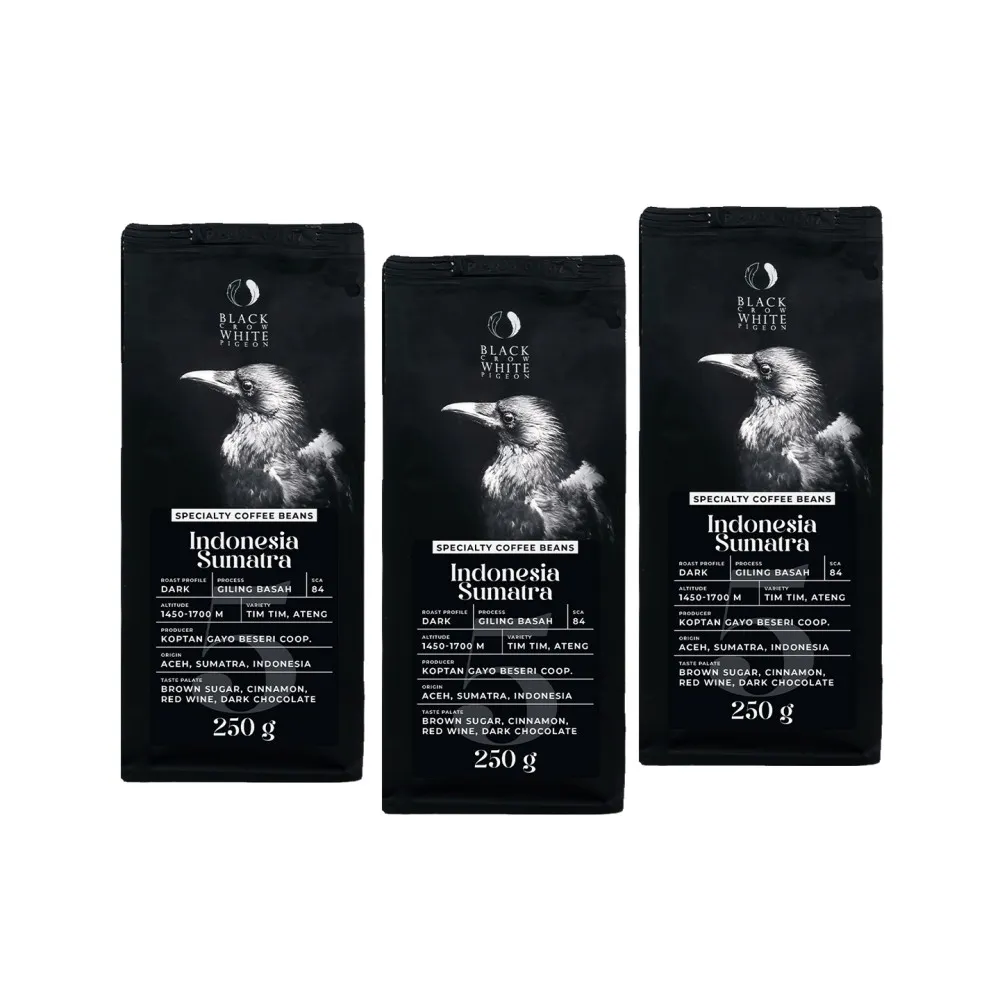 На острове Суматра в Индонезии, в области Ачех на высотах Гайо, мелкие фермеры объединились в кооператив Koptan Gayo Beseri для выращивания специализированного кофе. Его уникальный вкус обеспечивается идеальным климатом, богатой природой и особенным методом обработки GILING BASAH, как его называют индонезийцы. Этот метод не сушит зерна полностью после ферментации и промывки. Затем влажные зерна (влажность 25-30%) проходят через специальную машину для шелушения перед дальнейшей сушкой. В результате этого, кислотность кофе значительно снижается, а вкус усиливается – таким образом, зерна получают истинный индонезийский вкус.