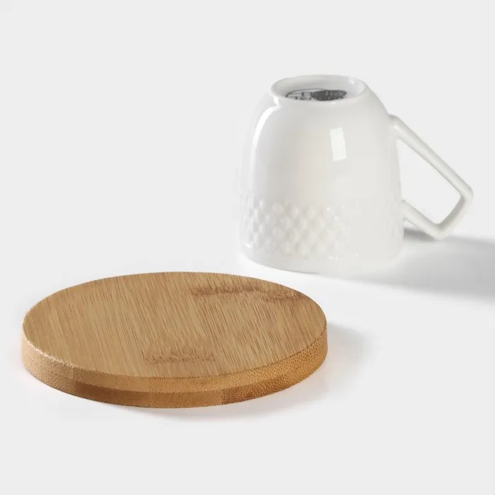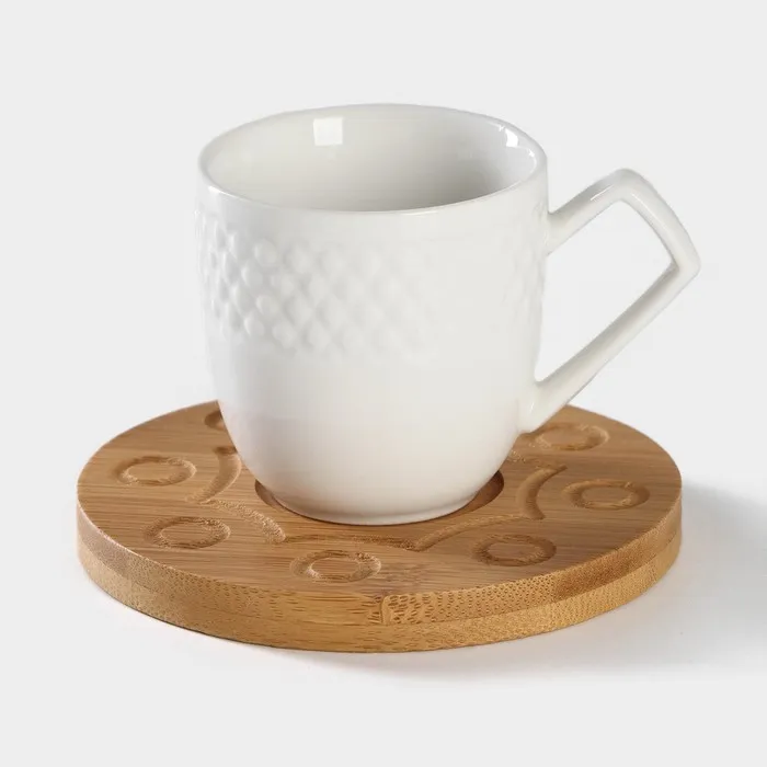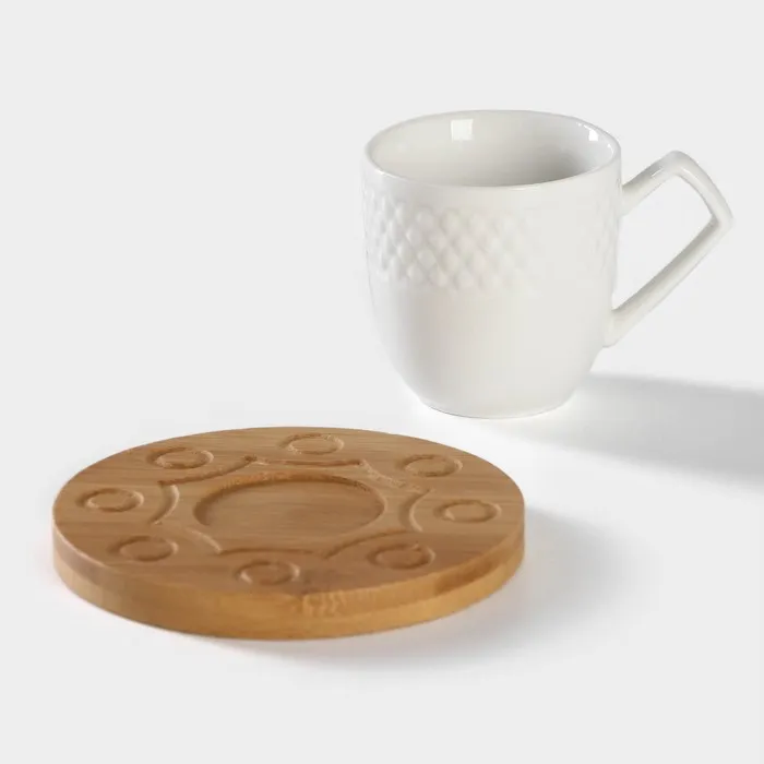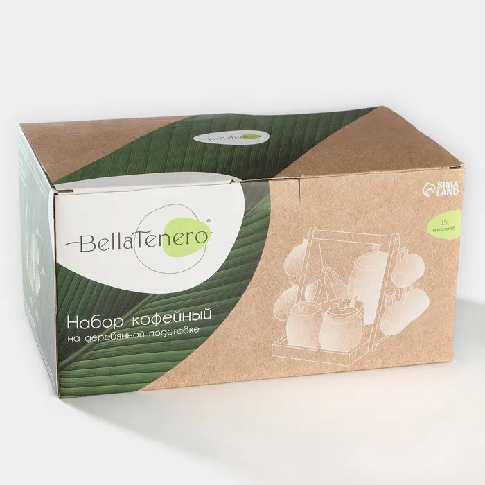 Набор кофейный фарфоровый на бамбуковой подставке BellaTenero, 15 предметов: чайник 850 мл, 6 кружек 70 мл, сахарница с ложкой 300 мл, молочник 250 мл, 6 блюдец, белый — Характеристики